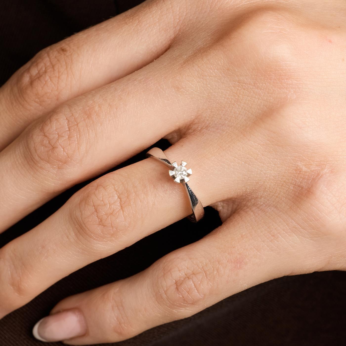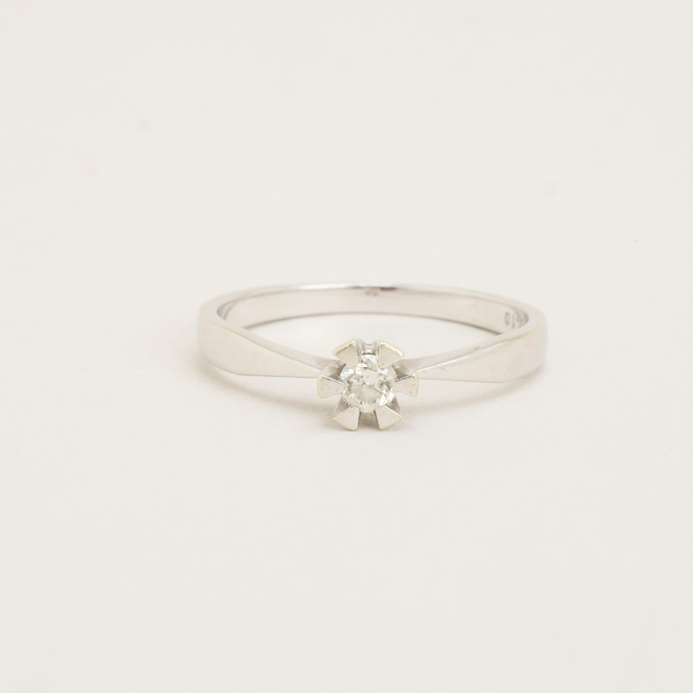 Modell: Solitairring med diamant (0.1 ct) i 14 karat str. 52