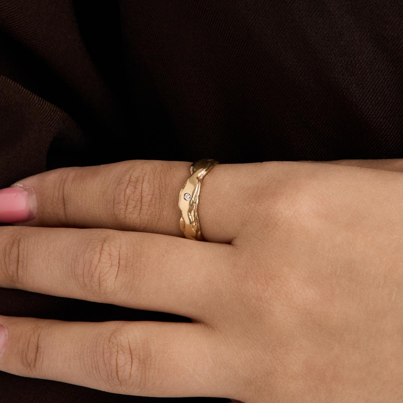 Modell: Uttalelse ring med diamant (0.02 ct) i 14 karat str. 58
