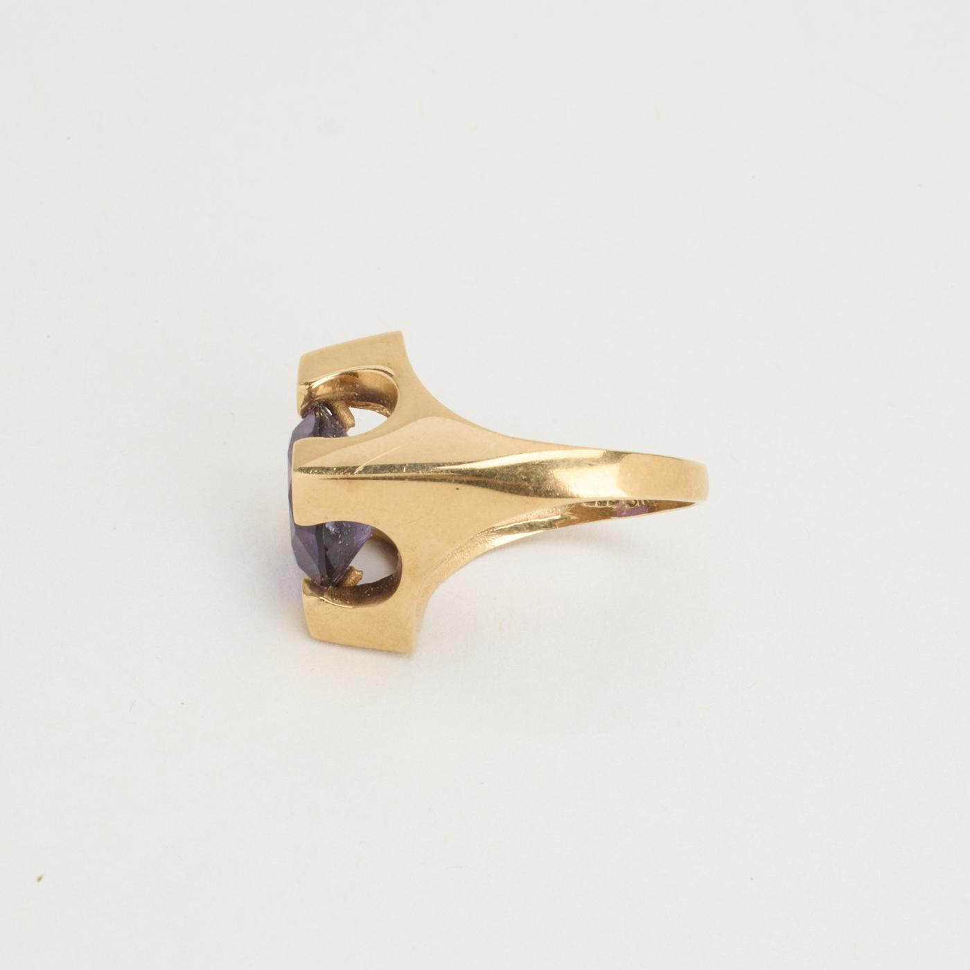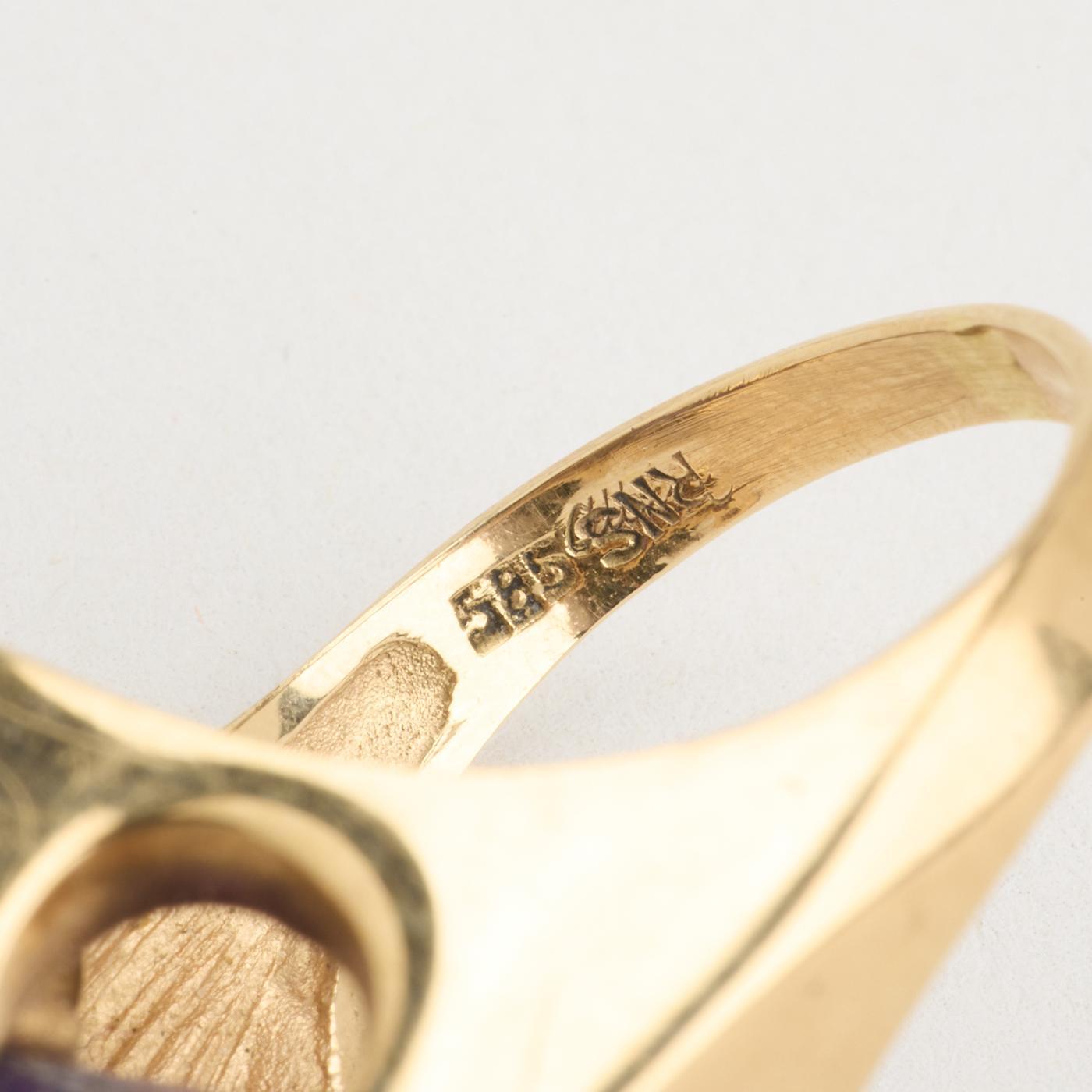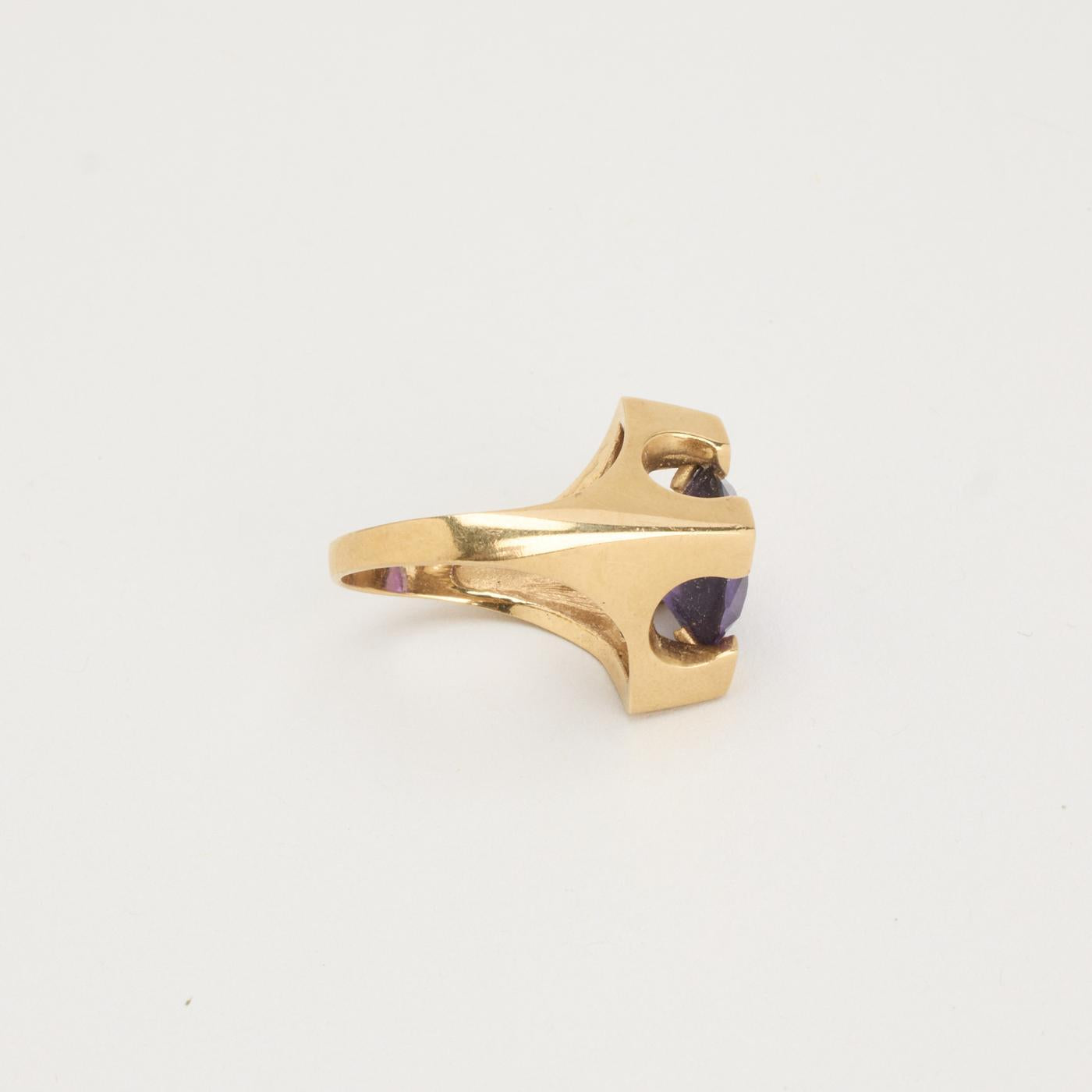 Modell: Uttalelse ring i 14 karat med en syntetisk safir str. 54