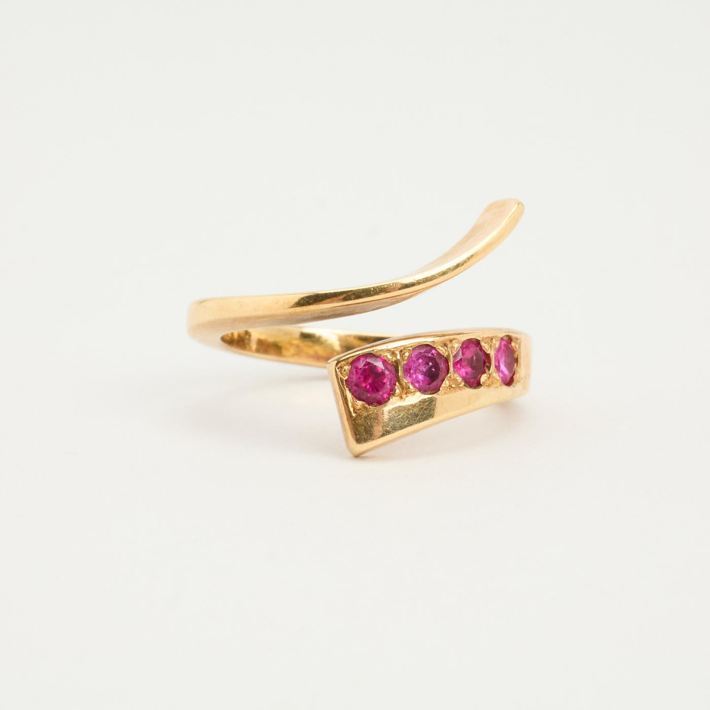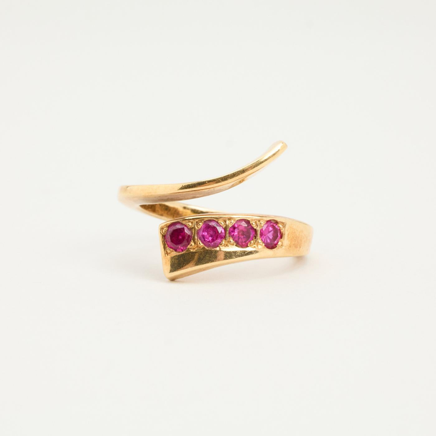 Modell: Uttalelse ring i 14 karat med en syntetisk safir str. 54