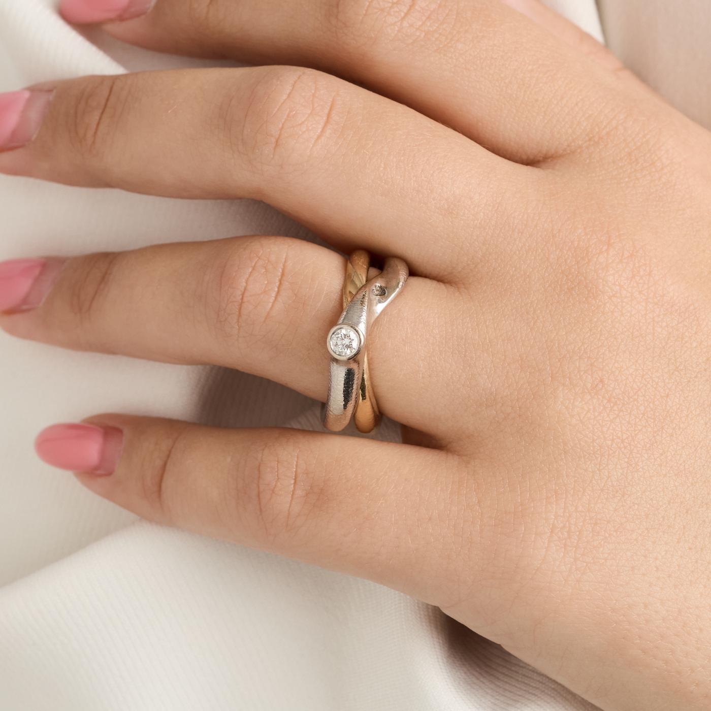 Modell: Ole Lynggaard Fidelity Crossoverring med diamant (0.19 ct) i 14 karat str. 57